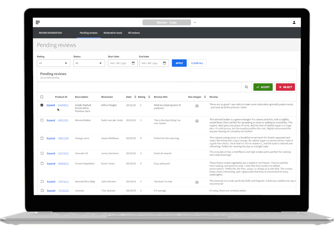 Reivew moderation UI